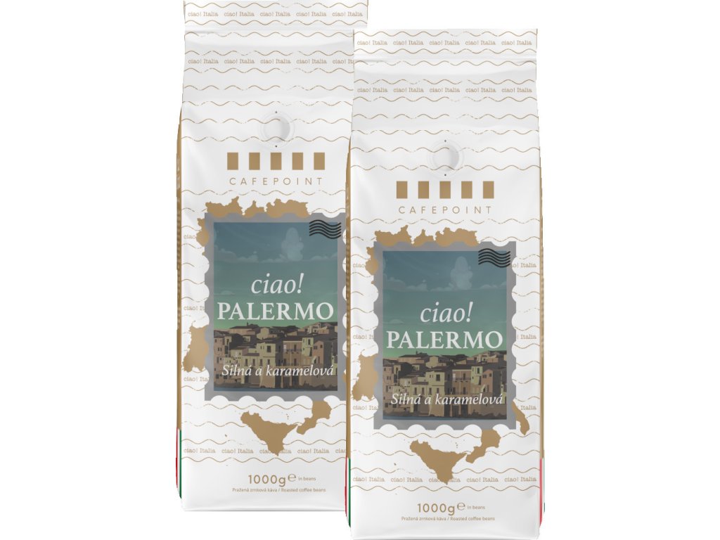 Pražená zrnková káva Cafepoint Ciao Palermo (Čau Palermo) pozostáva z výberových kávových zŕn Arabiky a Robusty pochádzajúcich z plantáží Strednej Ameriky. Vďaka vysokému obsahu Robusty má i viac kofeínu a preto je skôr vhodná na ranné kávičkovanie alebo náročný deň v práci. V šálke sa vyznačuje prenikavou arómou, bohatou krémou a silnou karamelovou chuťou so stredným telom. Táto káva bola namiešaná na základe prieskumu obľúbenosti a preferencií chutí u zákazníkov Cafepointu a je vhodná na prípravu espressa, cappuccina alebo caffé latte.