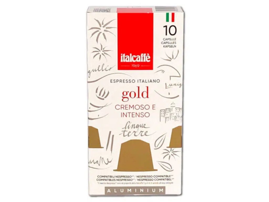 Stredne pražená mletá káva Italcaffé Gold pre Nespresso je nesmierne jemná káva s úžasnou smotanovou krémou, strednou aciditou a znamenitou dlhotrvajúcou chuťou a arómou. Káva je ihneď po zomletí vákuovo uzatvorená do hliníkovej kapsule vďaka čomu sa stáva recyklovateľnou a zároveň si káva zachováva svoju chuť, arómu a kvalitu až do momentu použitia.