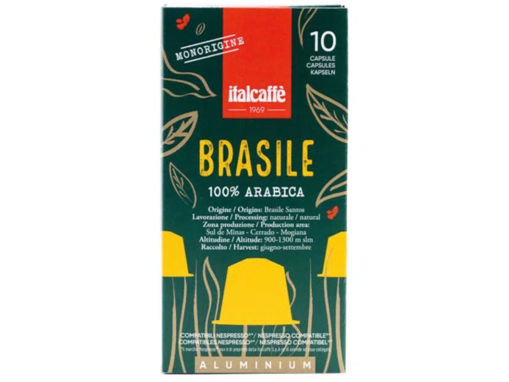 Praženú mletú kávu Italcaffé Single Origin Brasile určenú pre systém Nespresso predstavuje odroda Arabiky Brasil Santos, ktorá sa pokladá za najlepšiu brazílsku kávu. Je sladká a vyvážená, pričom sa vyznačuje stredným telom a miernou aciditou s tónmi sladu, kakaa a obilnín. V dochuti možno rozpoznať náznaky čokolády a pražených arašidov. Káva je ihneď po zomletí vákuovo uzatvorená do hliníkovej kapsule vďaka čomu sa stáva recyklovateľnou a zároveň si káva zachováva svoju chuť, arómu a kvalitu až do momentu použitia.