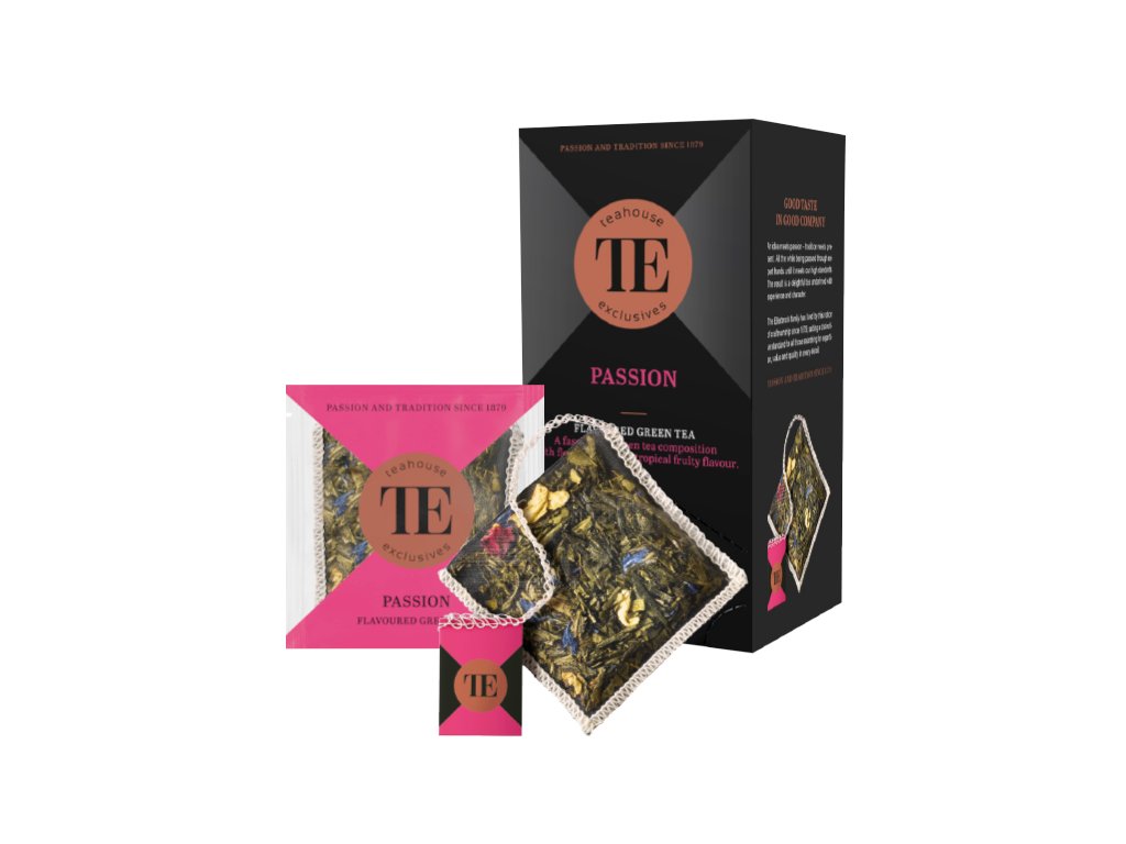 Passion Luxury Tea Bag obsahuje zmes exotického ovocia a prírodných ingrediencií, ako sú marakuja (passion fruit), mango, ananás a ďalšie tropické ovocie. Aromatický profil je veľmi osviežujúci a povznášajúci, čo zvyšuje celkový zážitok z pitia čaju. Dominujú tóny exotického ovocia. Luxury Tea Bags sú balené v elegantných a sofistikovaných obaloch, ktoré zdôrazňujú prémiovú kvalitu produktu. Každé čajové vrecúško je individuálne balené, aby si zachovalo svoju čerstvosť a kvalitu. Vrecká sú ručne vyrobené z flísu, ktorý umožňuje lepšie rozvinutie chutí a vôní čaju.