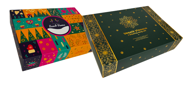Na výber máte dva dizajny darčekových krabíc - veselú farebnú krabicu alebo elegantnú zelenú krabicu.