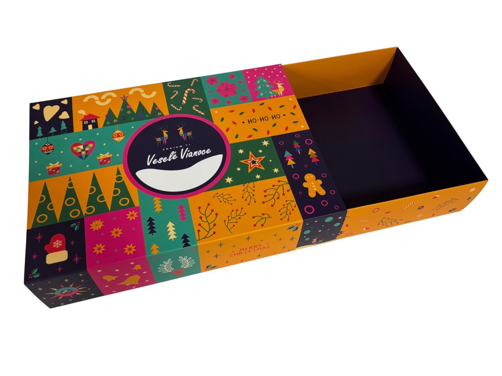 pevná a kvalitná papierová krabica s vianočným dizajnom a matným povrchom