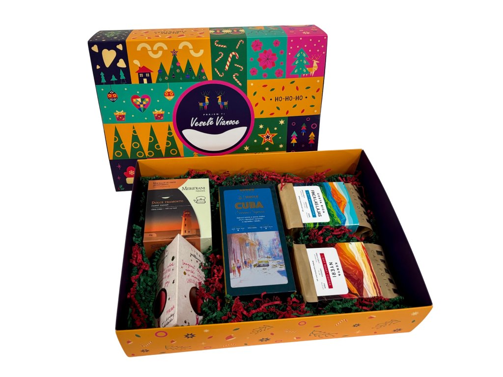 V tomto darčekovom balení si príde na svoje tradičný kávičkár aj kávičkár objaviteľ. Nájdete v ňom odrodovú kávu z Cuby, ktorá je pražená na moderné espresso a k tomu 2 svetlejšie pražené kávy, ktoré sú ovocnejšie a o niečo acídnejšie. Prémiové darčekové balenie dopĺňajú čokoládové plnené guličky od Lyry a sypaný čaj talianskej značky Meridiani.