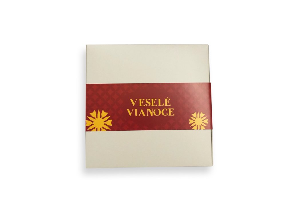 Štýlová papierová krabička s vianočným prebalom a v nej ukryté starostlivo vyberané produkty!
